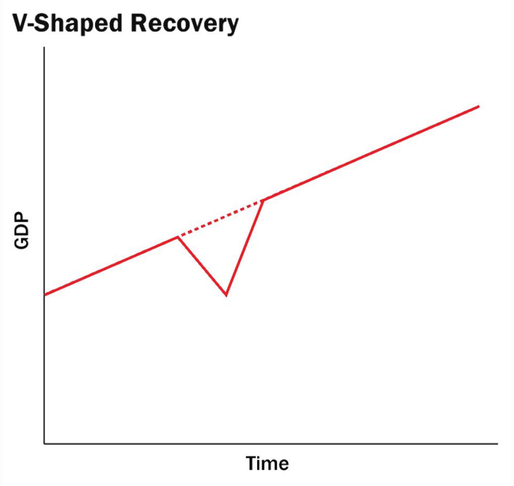 The best case scenario is a V shaped recovery, which means that the economy recovers quickly to pre-recession levels and that GDP growth continues at the same rate of as before the downturn.