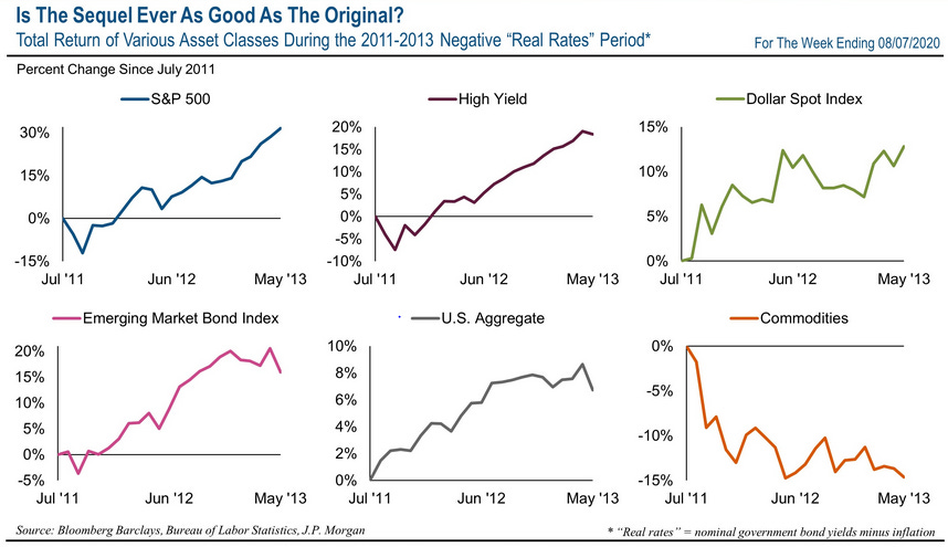 So what happens when the Fed keeps rates at or below zero, when real yields are negative for an extended period? It forces investors to “reach for return”. We last saw this in the mid2011-mid2013 period when equities, bonds and the dollar all did well. The chart below is courtesy of Payden & Rygel.